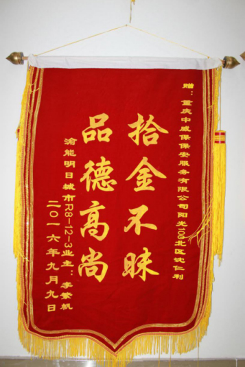 幾天后業(yè)主把一面錦旗送到了中威戰(zhàn)士手中,感謝中威戰(zhàn)士人員的行為。